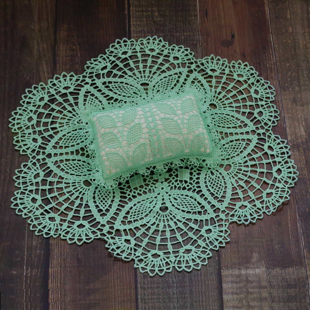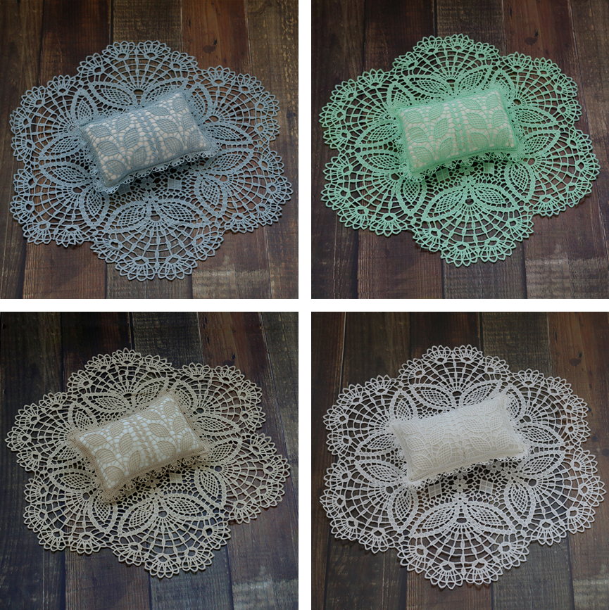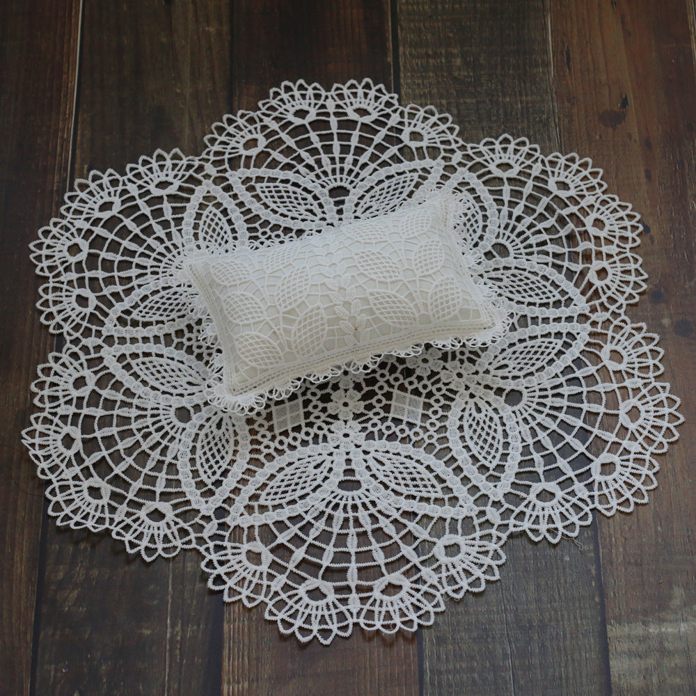 Avezano Newborn Baby Hollow Lace Round Blanket + Pillow Set Props