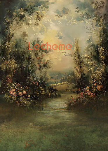 Avezano Flowers and Rivers Oil Painting Photography Backdrop By Lecheme Ruby Gu