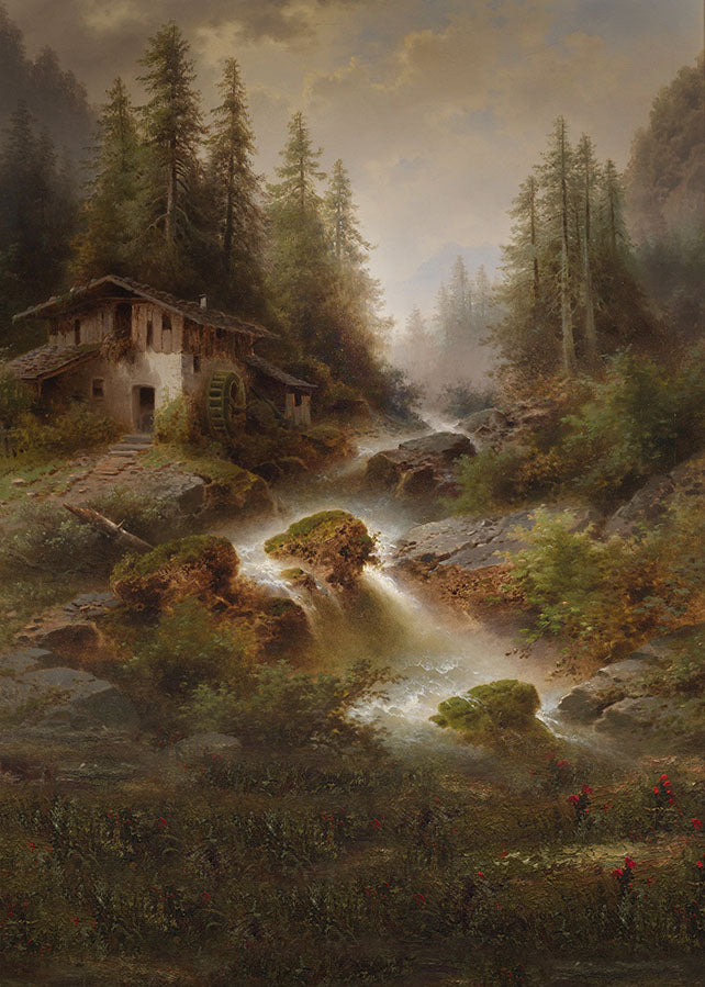 Avezano Mountain Hut Oil Painting Style Photography Backdrop