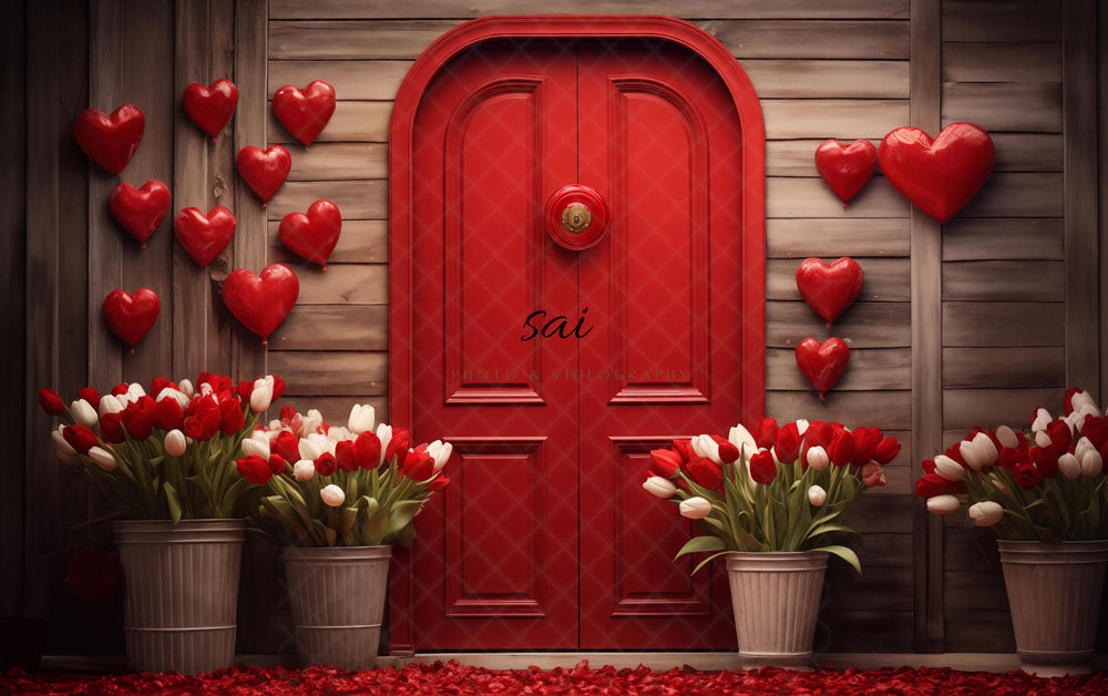 Avezano Valentine's Day Red Doors and Flowers Photography Backdrop Designed Sai photo & videography