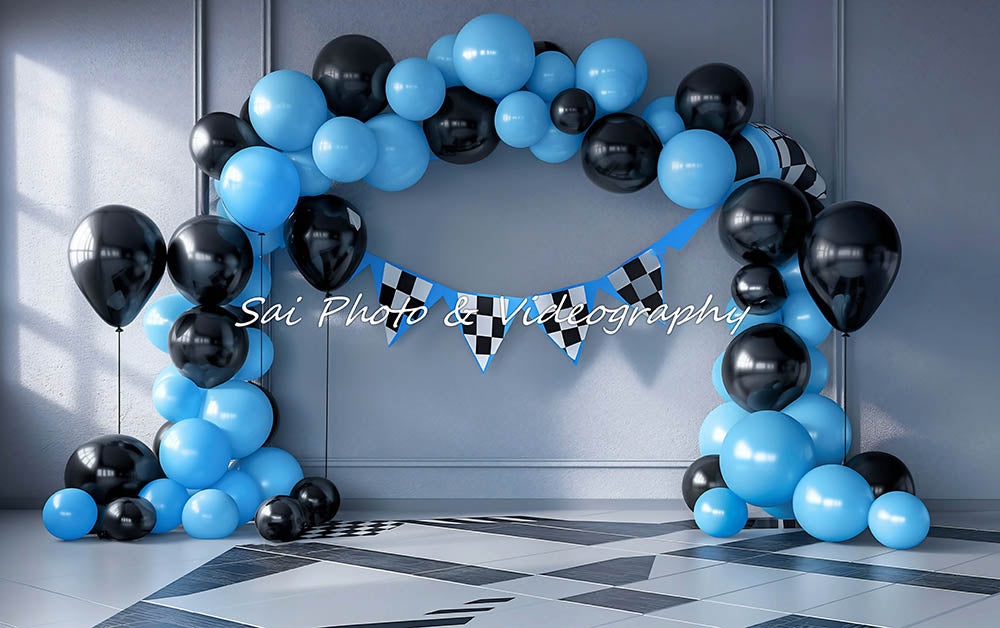 Avezano Blue and Black Balloon Arch Photography Backdrop Designed Sai photo & videography
