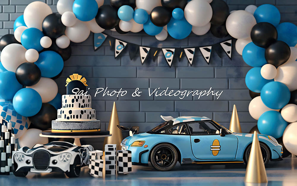 Avezano Blue Sports Car Model Birthday Photography Backdrop Designed Sai photo & videography
