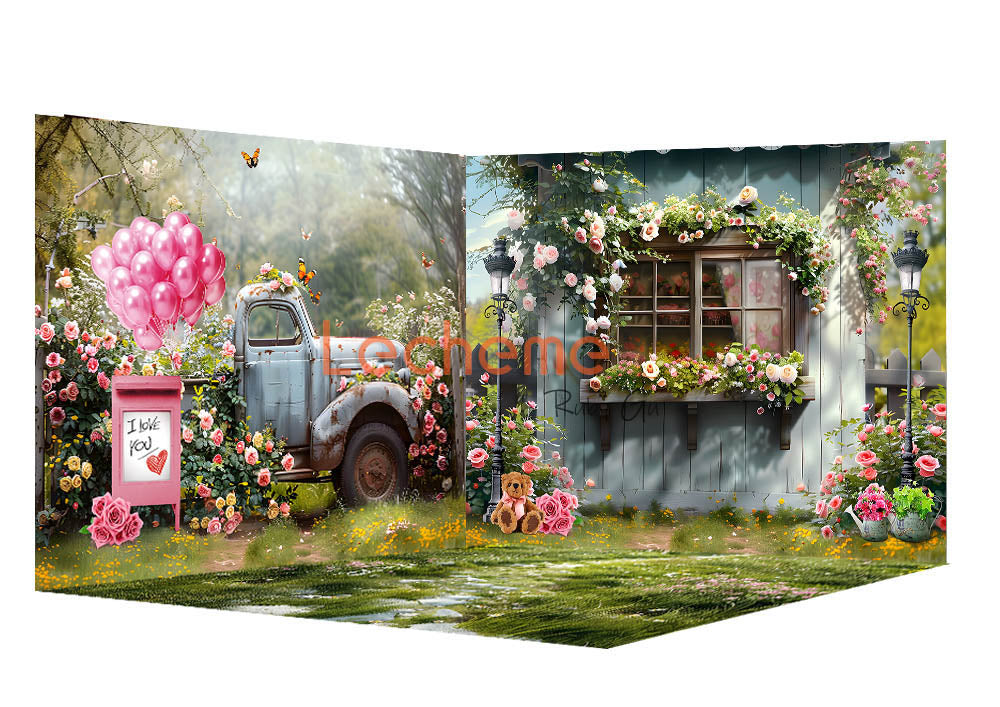 Avezano Spring Roses and Balloons Backdrop Scene Room Set By Lecheme Ruby Gu