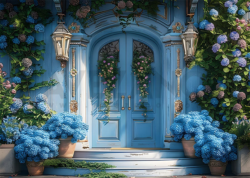 Avezano Spring Blue Door and Flower Photography Backdrop