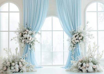 Avezano Blue Curtains And White Bouquet Photography Backdrop Designed By Polly Ro Design