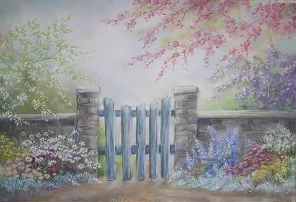 Avezano Handpainted Spring Plants And Fence Photography Backdrop