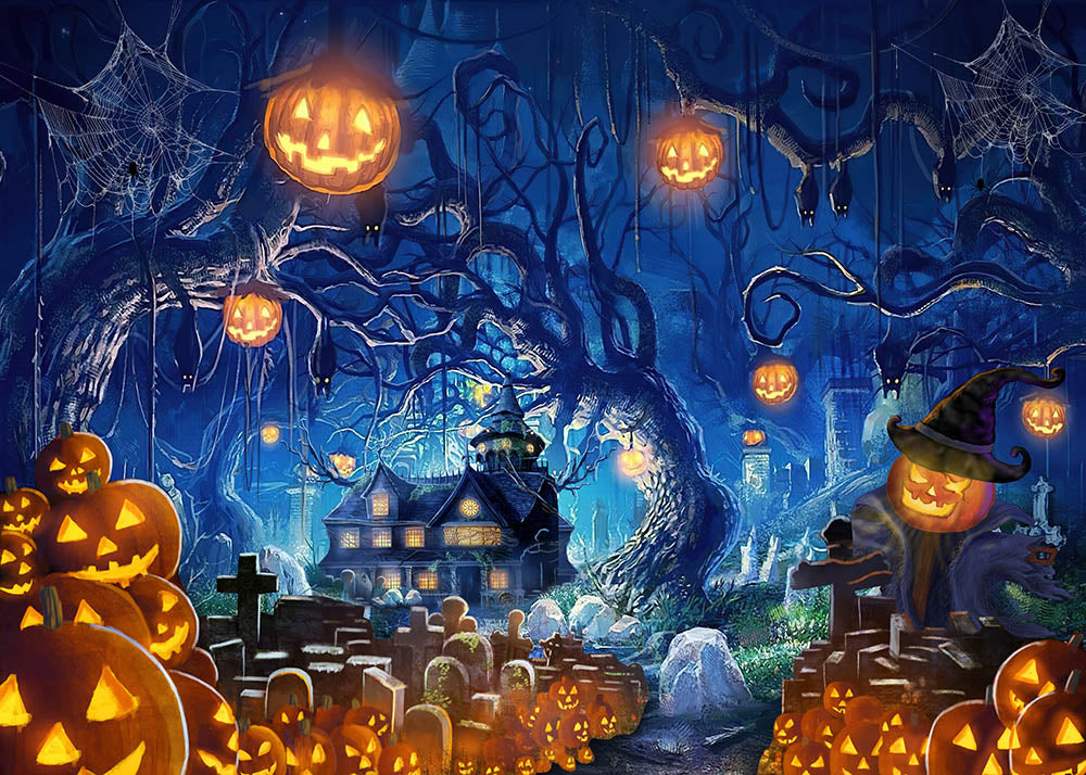 Avezano Witch Forest Jack-O-Lanterns Halloween Photography Backdrop