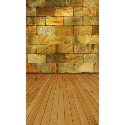 Avezano Yellow Marble Brick Wall Texture Photo Backdrop With Vertical Version Wood Floor