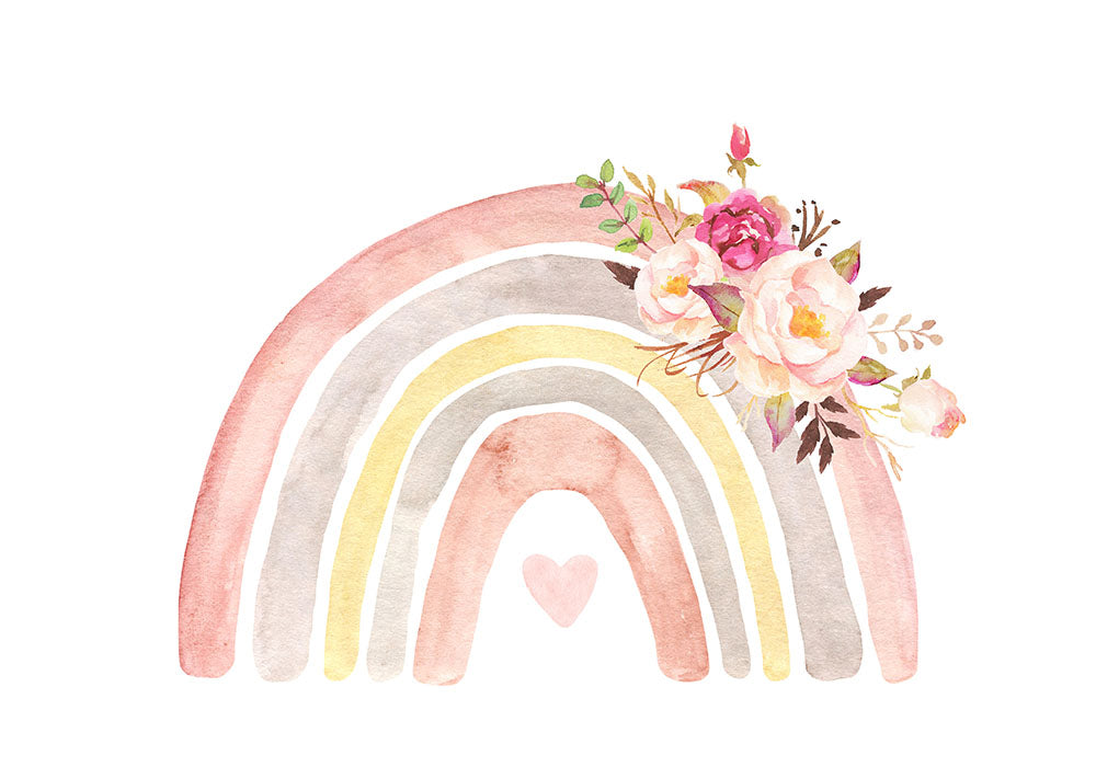 Avezanohand-Painted Style Rainbow With Flowers Photography Backdrop