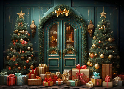Avezano Beautiful Christmas Tree and Gift Shop Photography Backdrop