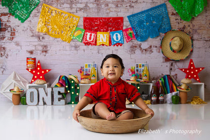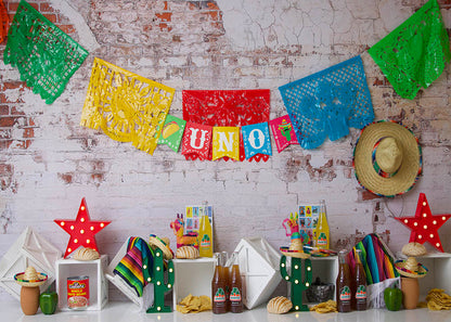 Avezano Brick Wall and Five-Color Small Flag Party Photography Background by Stefany Figueroa