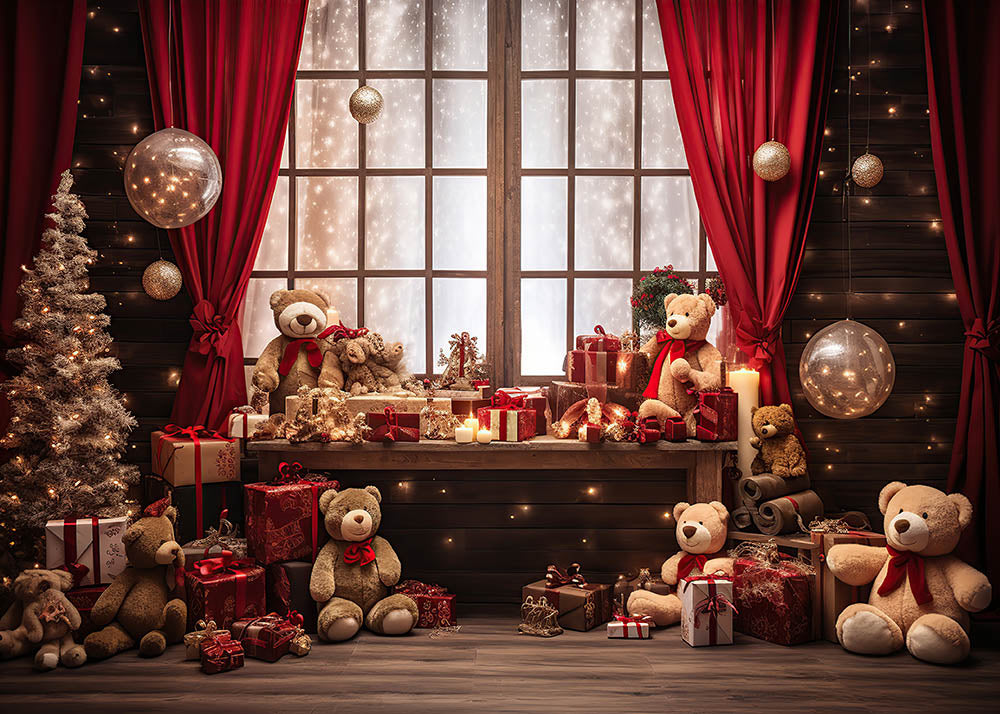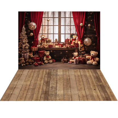 Avezano Christmas Bear Present 2 pcs Set Backdrop