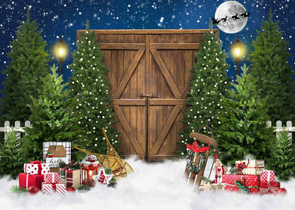 Avezano Christmas Gifts and Wooden Door Photography Backdrop
