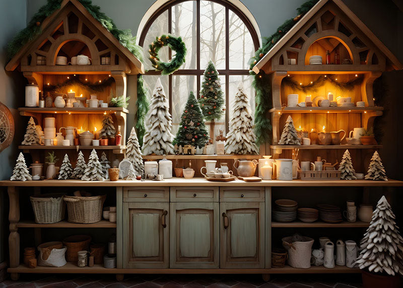 Avezano Christmas Kitchen Cabinet Cutlery Photography Backdrop