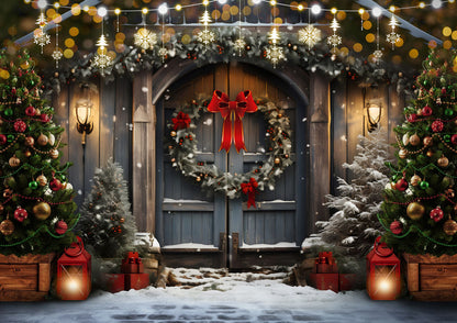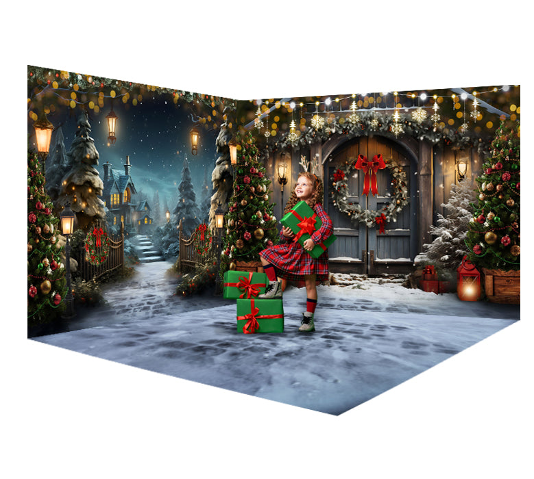 Avezano Christmas Tree Decorations and Snow Photography Backdrop Room Set