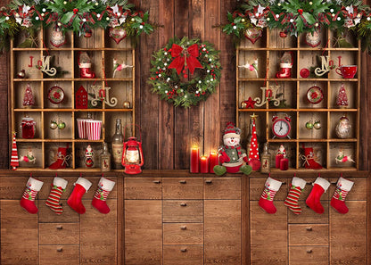 Avezano Christmas Wooden Cabinet Gift Window Photography Backdrop