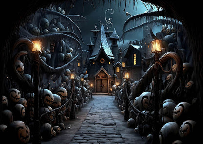 Avezano Halloween Castle Night Pumpkin Backdrop for Photography