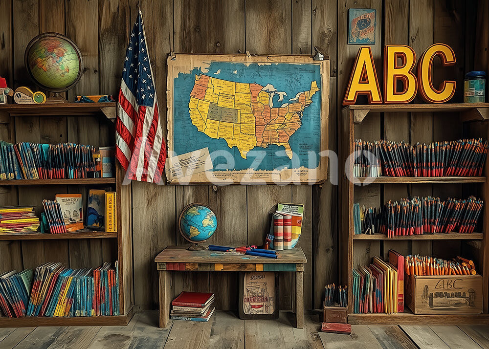 Avezano Map and Crayons Photography Backdrop For Back To School