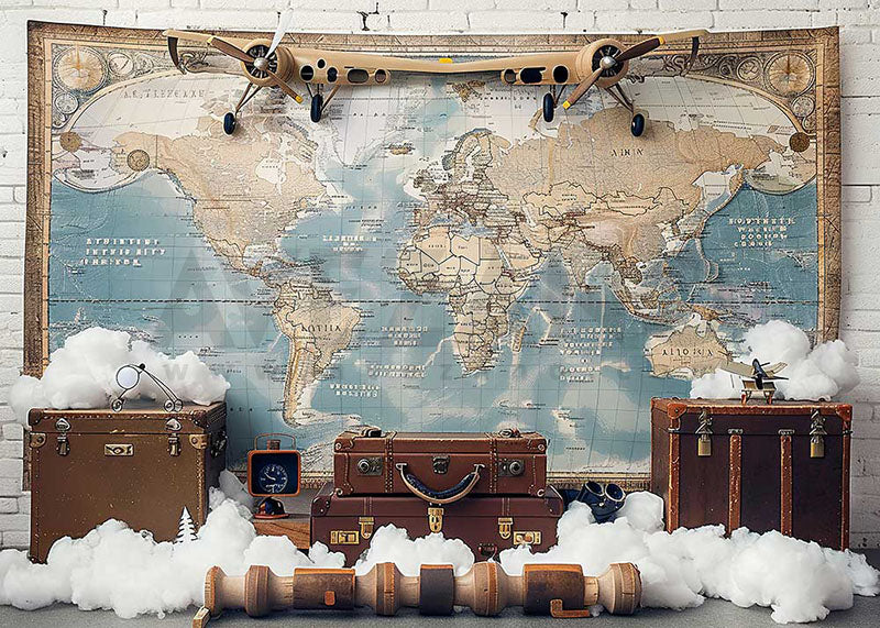 Avezano Maps and Suitcases Photography Backdrop For Back To School