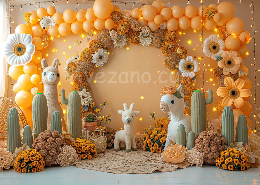 Avezano Orange Balloon Arch and Cactus Photography Background
