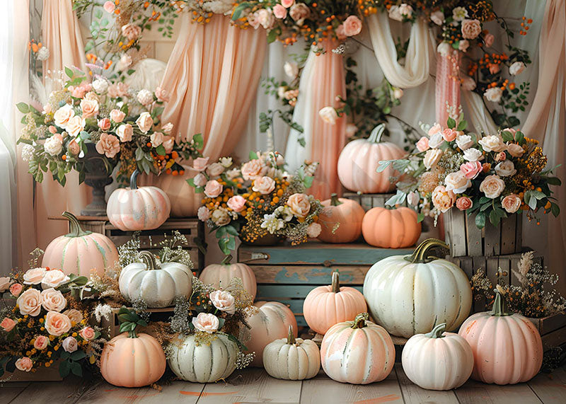 Avezano Pink Pumpkin and Flowers Photography Backdrop