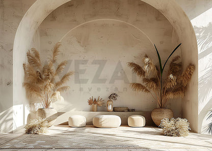 Avezano Simple Arch Wall and Reed Decoration Photography Backdrop