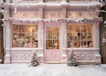 Avezano Snow Pink House Christmas Shop Photography Backdrop