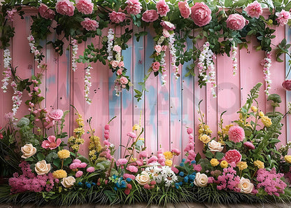 Avezano Spring Pink Wood-Paneled Walls and Flowers Photography Backdrop
