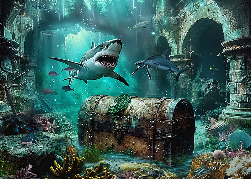 Avezano Summer Undersea Adventure Treasure Chest Photography Backdrop
