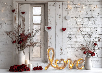 Avezano Valentine's Day White Brick Wall Photography Backdrop