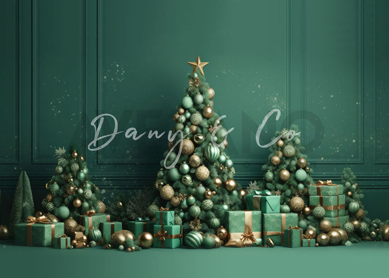 Avezano Winter Christmas Tree and Gift Photography Backdrop Room Set