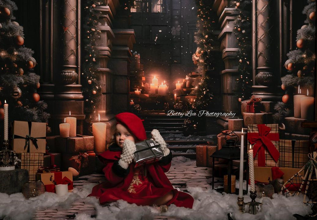 Toile de fond pour photographie de décorations et de cadeaux de Noël d'Avezano