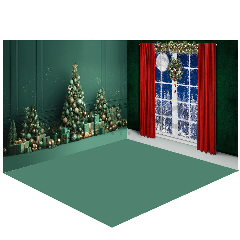 Toile de fond pour photographie de Noël avec rideaux verts Avezano