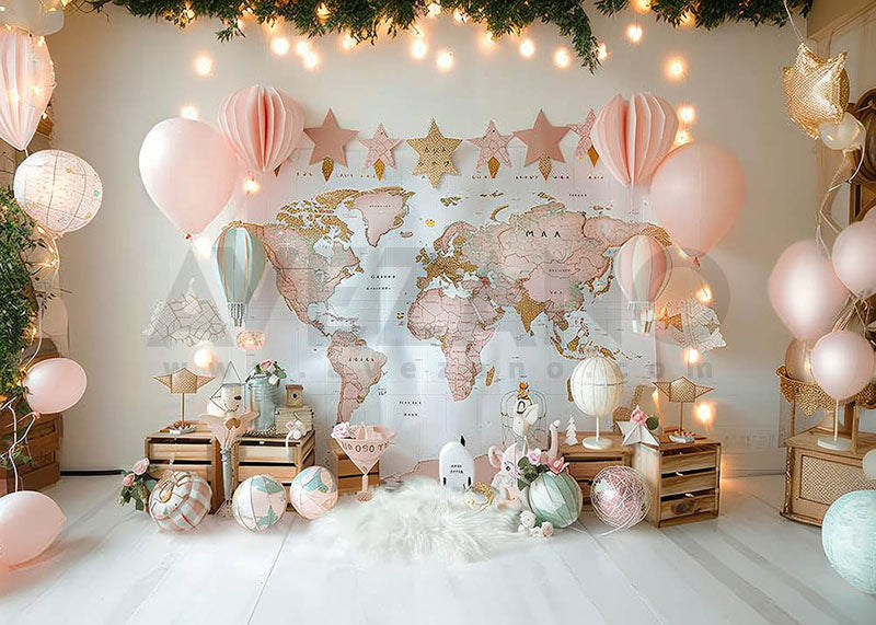 Toile de fond numérique pour fête d'anniversaire avec arche de ballons Avezano conçue par Elegant Dreams