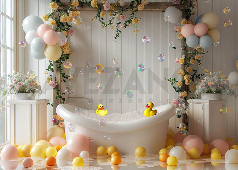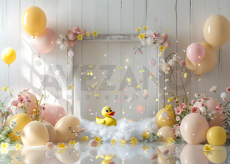 Ballons de salle de bain pour bébé Avezano et petits canards jaunes Cake Smash Photography Background