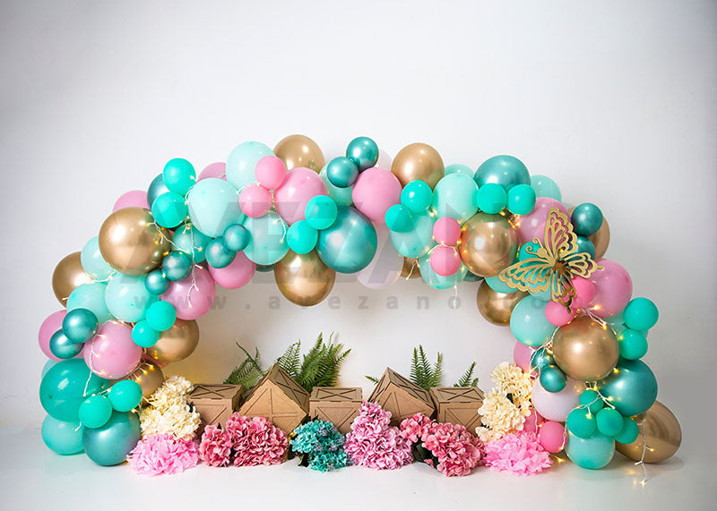 Ballons Avezano Arche Bleu-Rose Photographie Fond de Fête