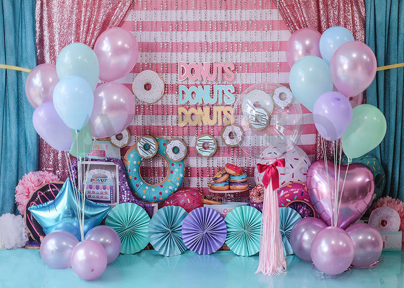 Fond de photographie de gâteau de fête de ballon arc-en-ciel d'Avezano