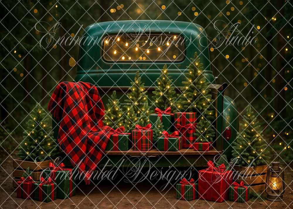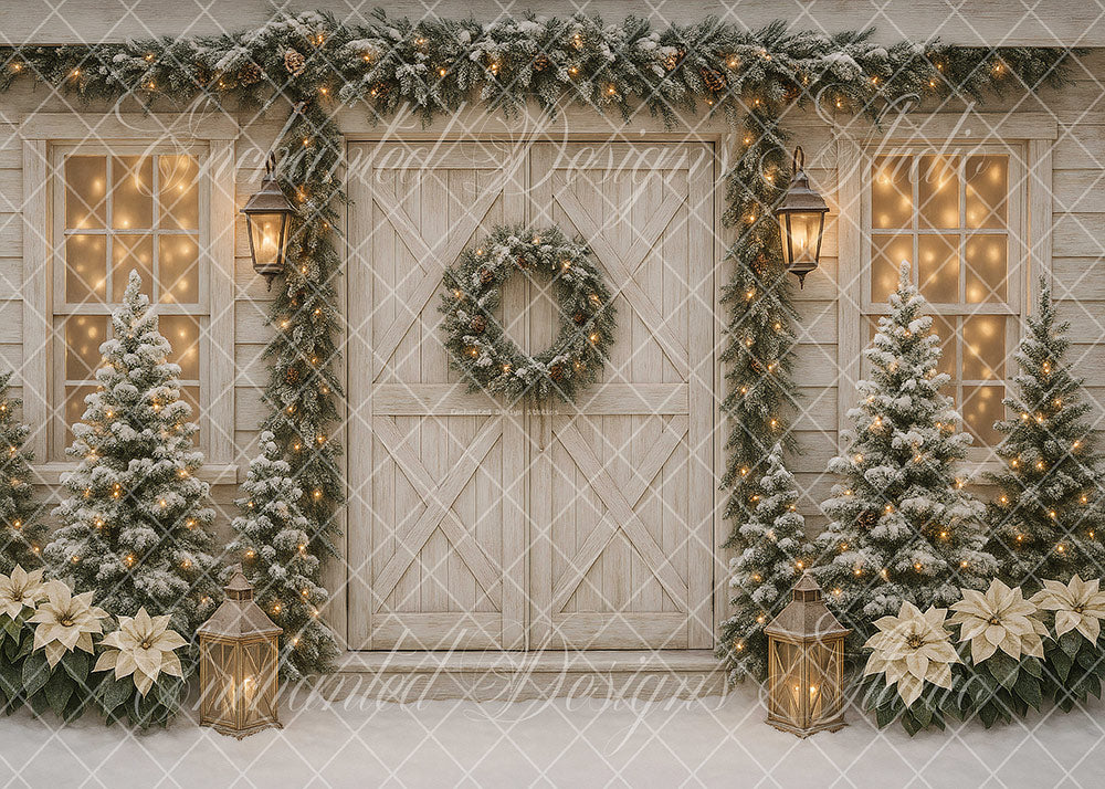 Toile de fond pour photographie de sapin de Noël blanc et de cadeaux d'Avezano