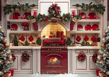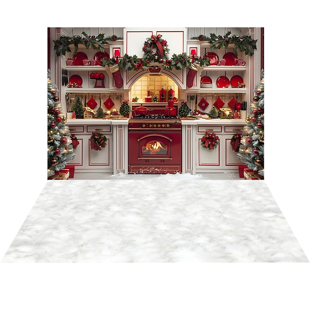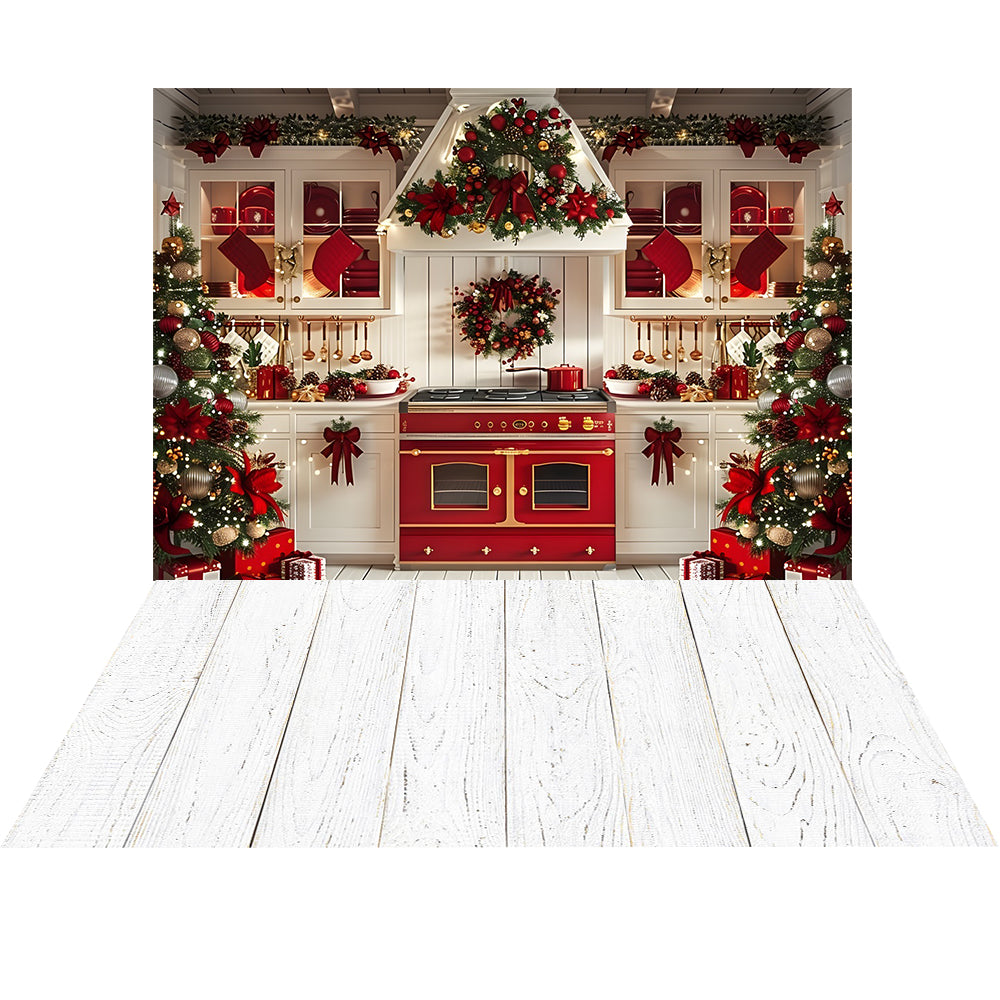 Toile de fond pour photographie de Noël avec armoires et couverts vintage d'Avezano par Lecheme Ruby Gu