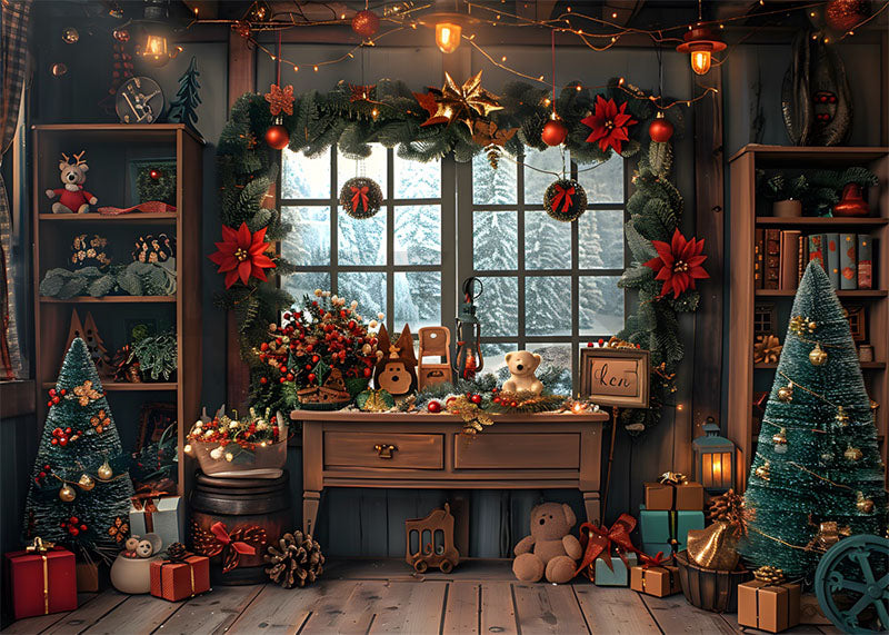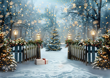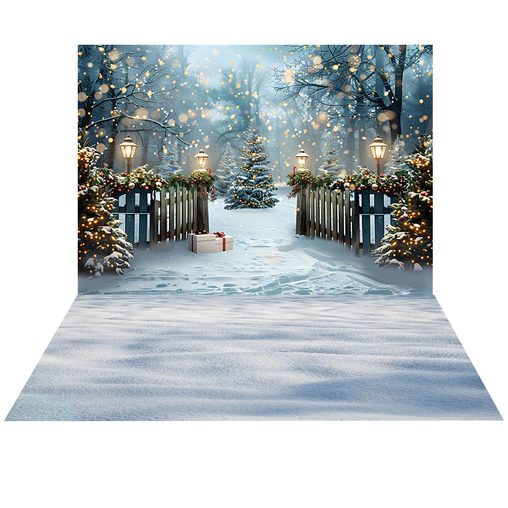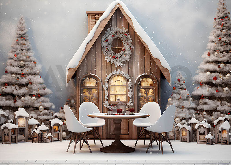 Avezano Noël Hiver Neige et Décorations de Noël Photographie Toile de Fond Par Lecheme Ruby Gu