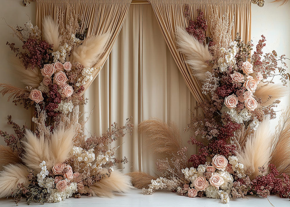 Toile de fond pour photographie de roses et de paravents de style bohème de couleur crème Avezano