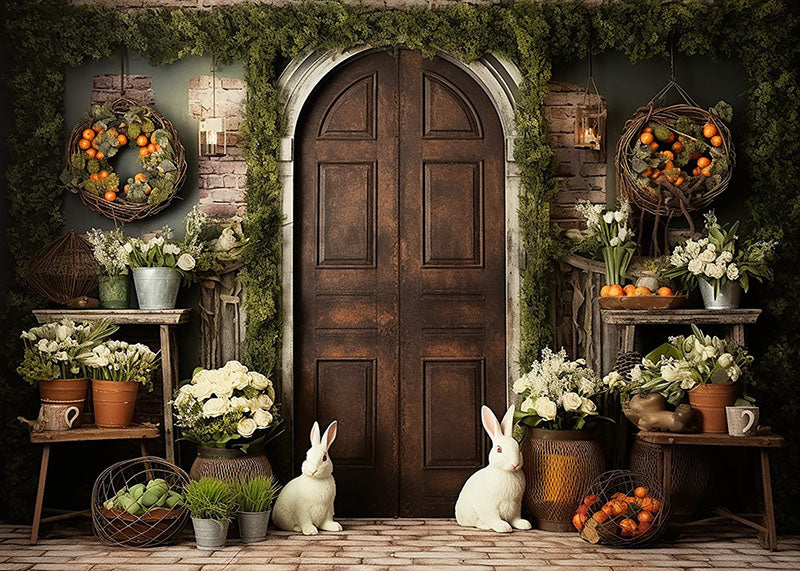Avezano Spring Easter Retro Door et Green Plants Décoration Photographie Toile de fond
