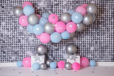 Toile de fond pour la fête d'anniversaire des jumeaux Avezano avec ballons pour la photographie par Paula Easton
