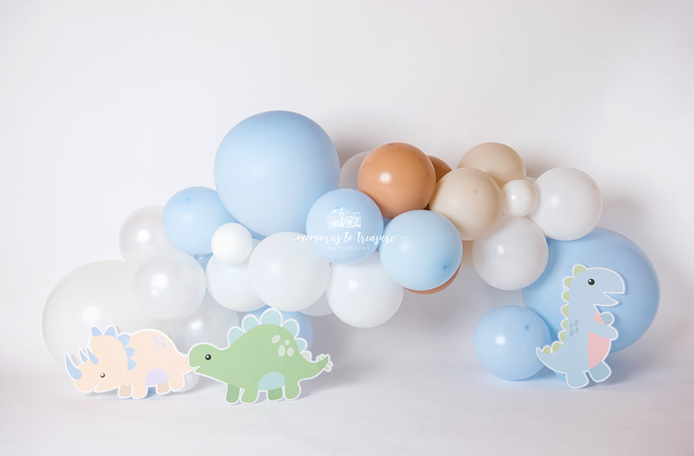 Toile de fond de ballon bleu et blanc dinosaure Avezano pour la photographie par Paula Easton