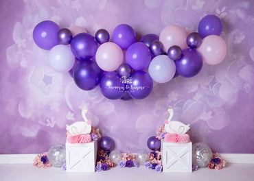 Toile de fond à thème de ballons cygne rose Avezano pour la photographie par Paula Easton