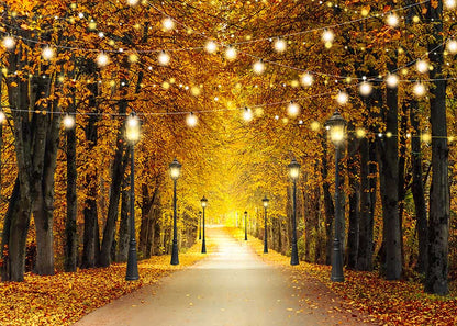 Sentier d'automne d'Avezano avec des feuilles mortes et un lustre en toile de fond pour la photographie