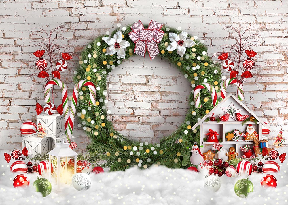 Toile de fond pour photographie de cadeaux et de couronnes de Noël à Avezano