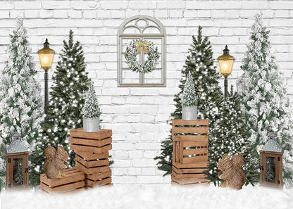 Toile de fond de mur de briques d'arbres de Noël d'Avezano pour la photographie