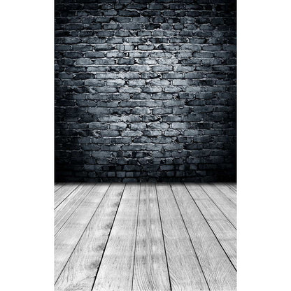 Avezano Cool Tone Dark Grey Brick Wall Texture Toile de fond pour la photographie avec plancher en bois