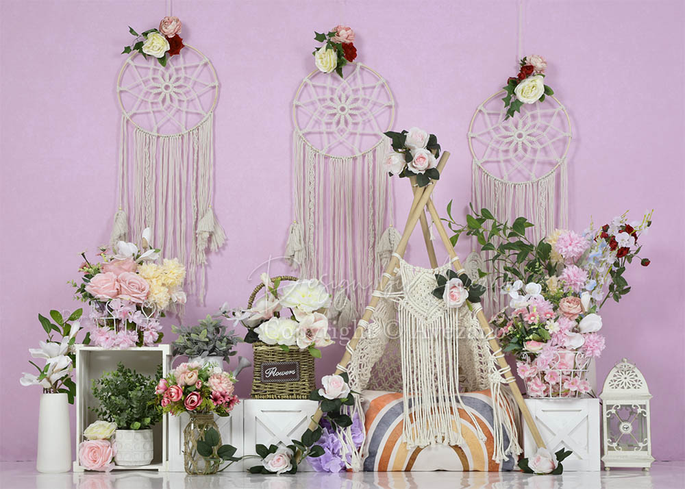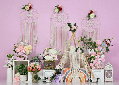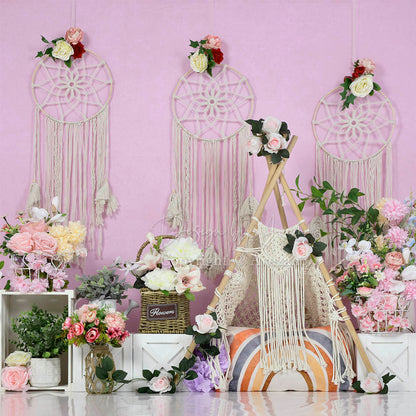 Avezano Fond Rose Fleurs Boho Toile De Fond Pour La Photographie